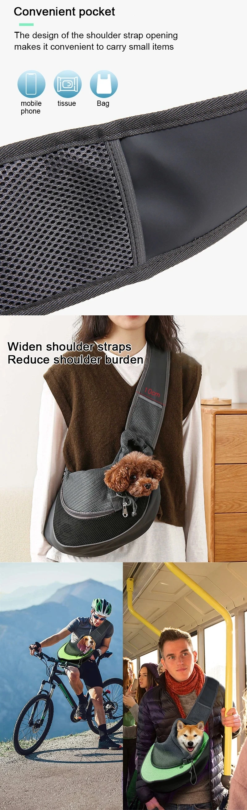 Bonding on the Go: Keeps your pet tucked close to your body, reducing their anxiety while keeping your hands free.